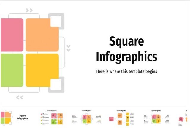 Mấu chốt của Slide là tập trung vào các khung hình vuông. Vậy nên màu sắc sử dụng ô vuông nhiều màu nổi trội trên nền màu trung tính. Nhờ thế nên khi trình bày các thông tin đảm bảo dễ dàng gây thiện cảm với người xem và có thể nắm được các thông tin chính mà không mất nhiều thời gian.