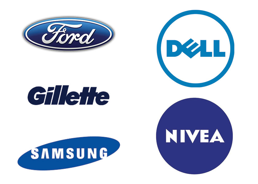 Ví dụ: các tập đoàn lớn sử dụng màu này: Samsung, IBM, Panasonic, GE, facebook, Intel…; các ngân hàng thường sử dụng màu này trong thiết kế logo như Vietin Bank, Á Châu Bank, Sacombank, Oceanbank,…